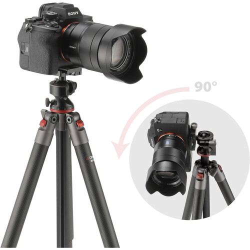 This tripod folds down to a compact 14.5″, and weighs only 1.5 lb. It’s perfect for travel and won’t weigh down your gear bag. It’s even small enough to carry in a backpack. The Y-shaped center column gives the CQL-13 a more compact diameter than a standard tripod when folded.